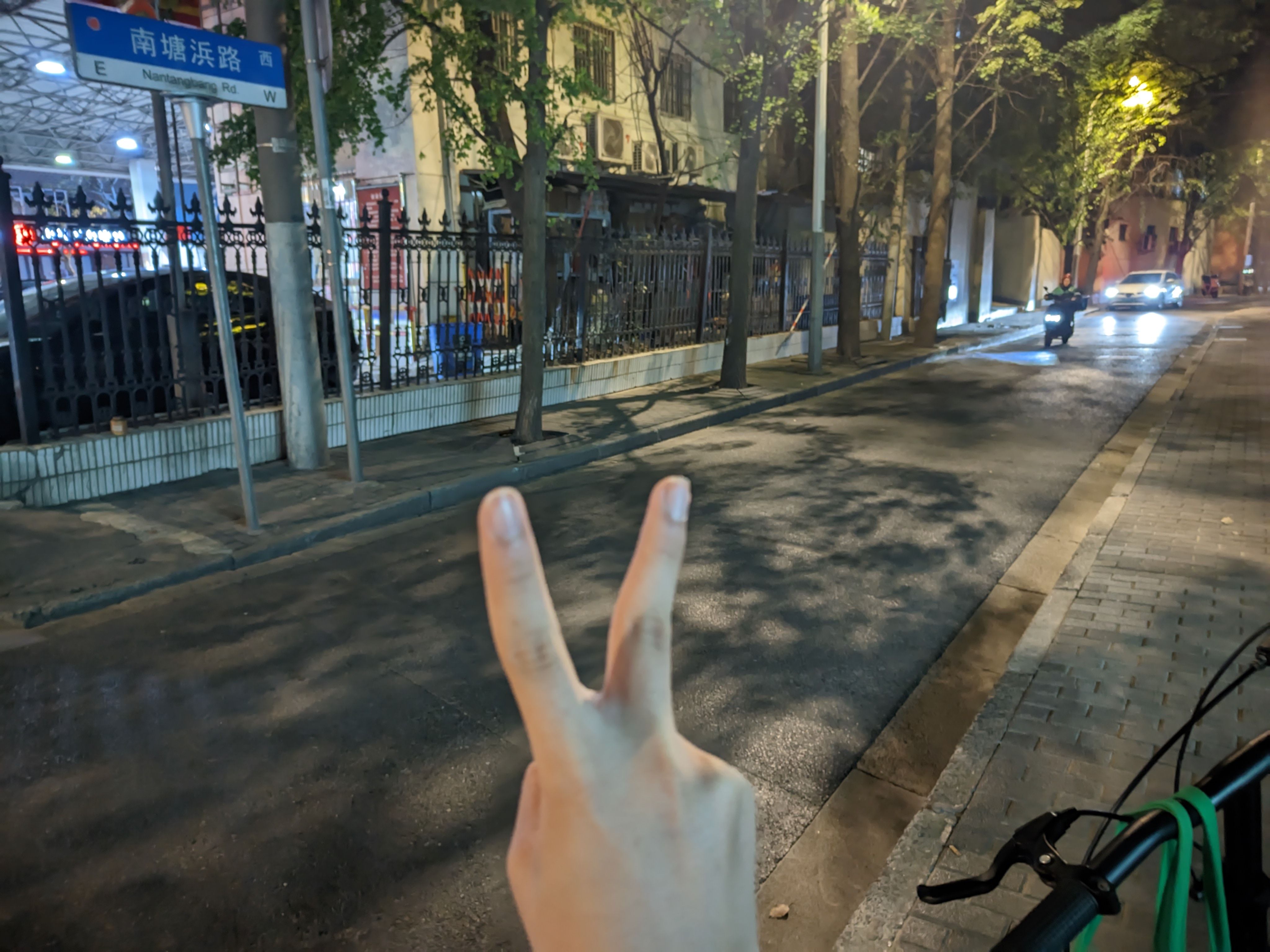 此为第二张照片,带兔子手势。当时的前一天陈欣恬(0510)第一次带我去她家,我感到非常兴奋,第二天晚上十点又偷偷到她家所在路,对路牌拍照,发到小组群(含0510)。0510认出了我在哪并感到震惊。