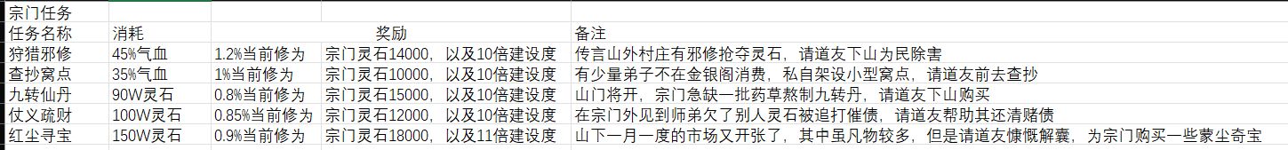 小小(QQ修仙机器人)宗门任务表。初二上末0529邀请我玩,我玩了很久。