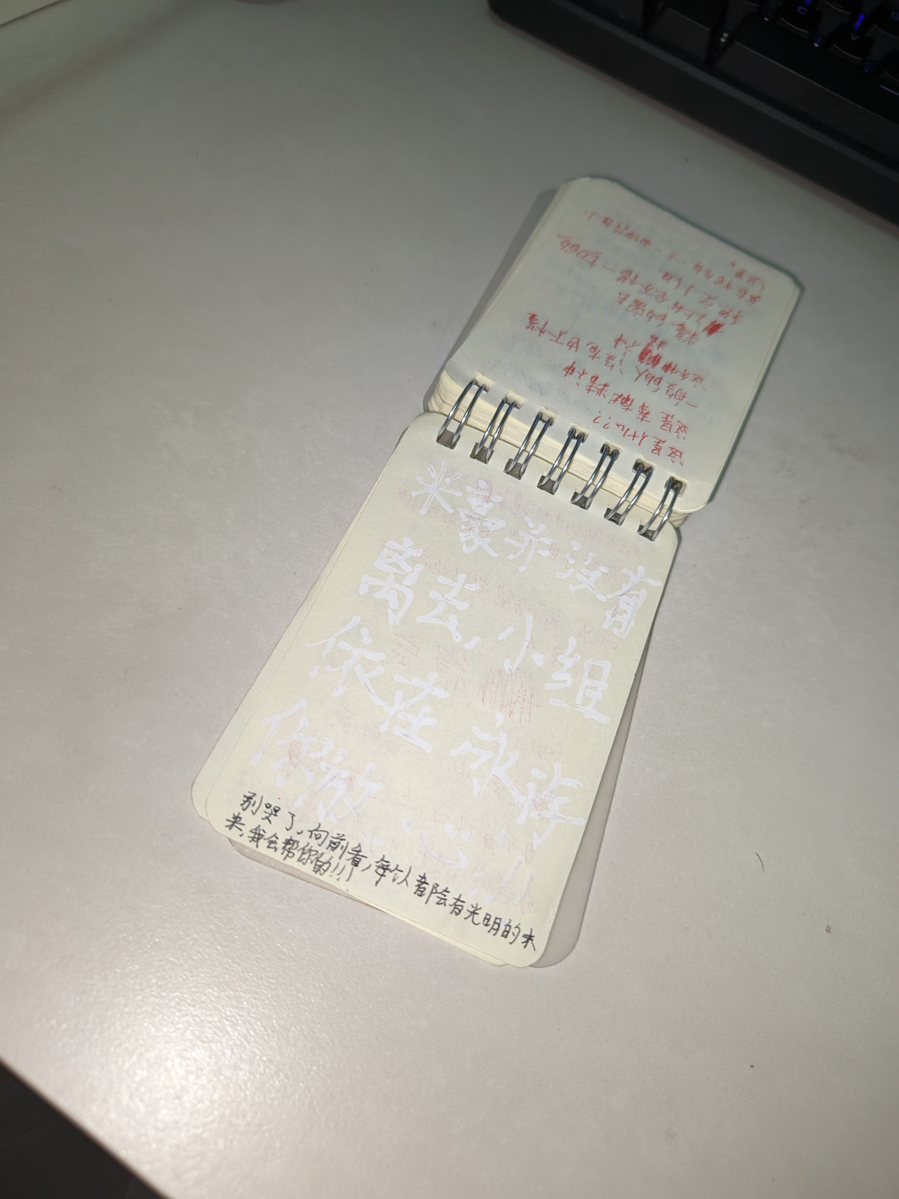 陈欣恬(0510)本(参见img10437及其后)的最温情一页。由于修正液难以扫描,我尝试了多个角度拍摄。
