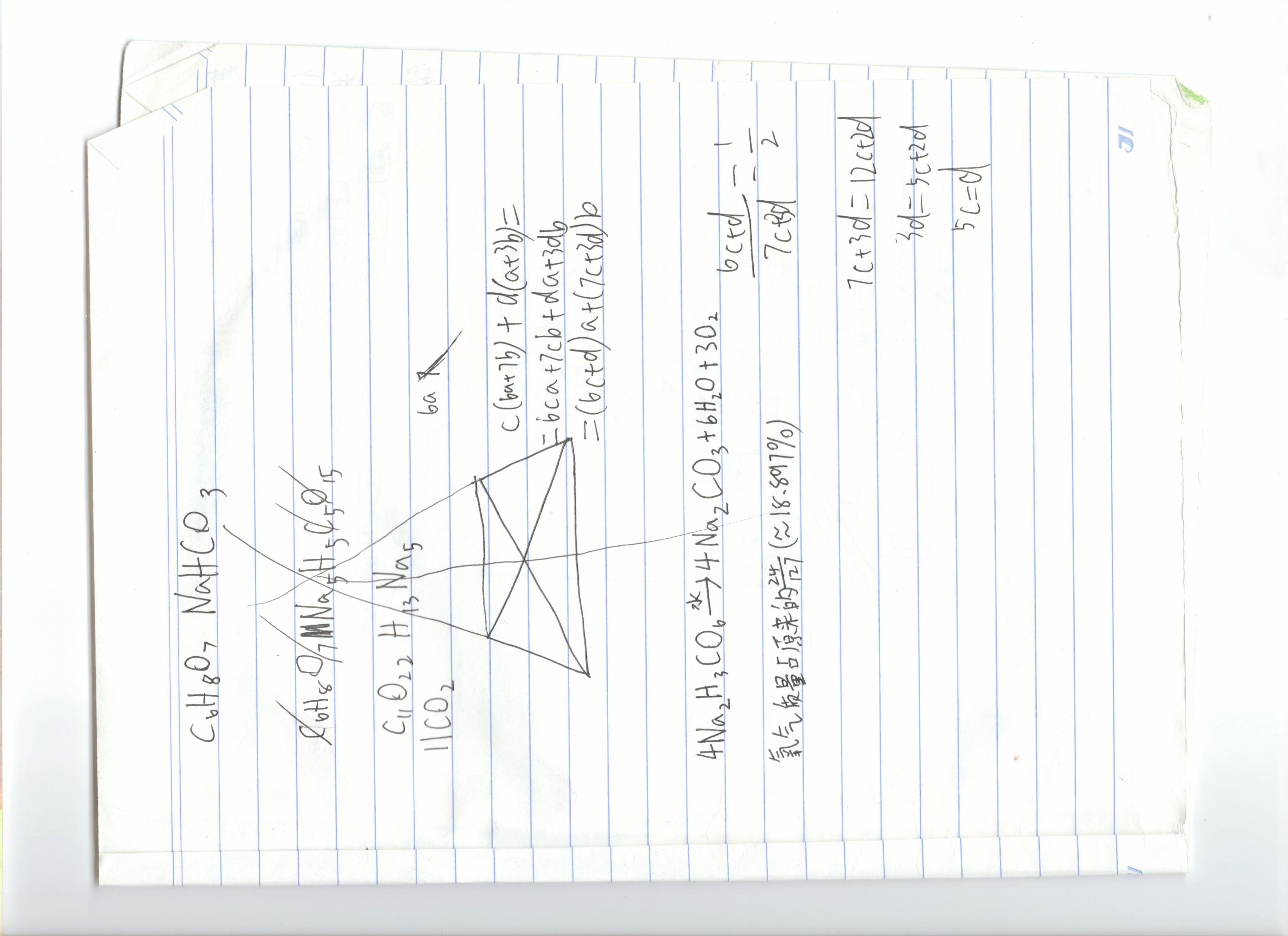 计算过碳酸钠遇水产生氧气的质量分数,并带有一个奇怪的相似三角形草稿。